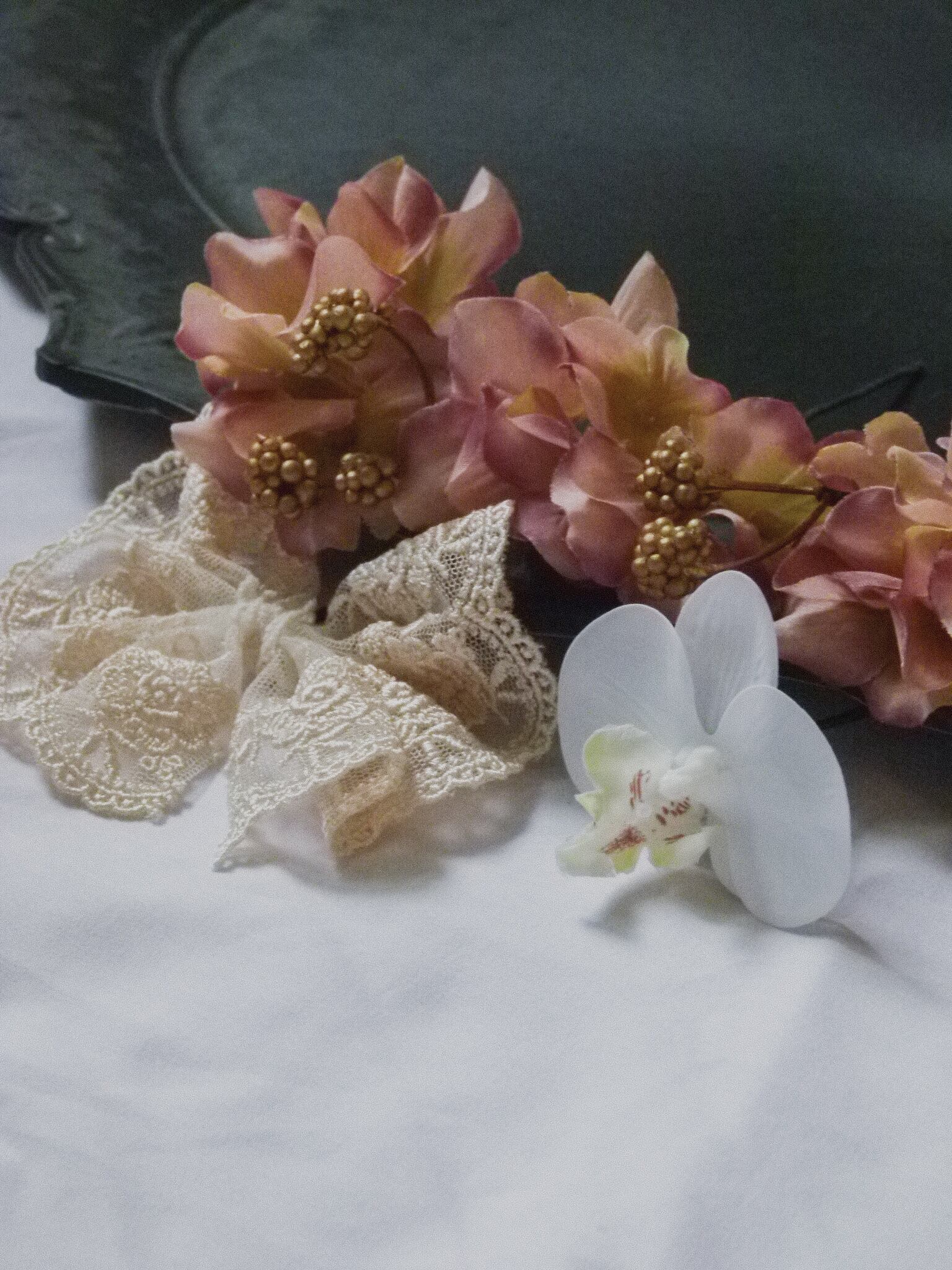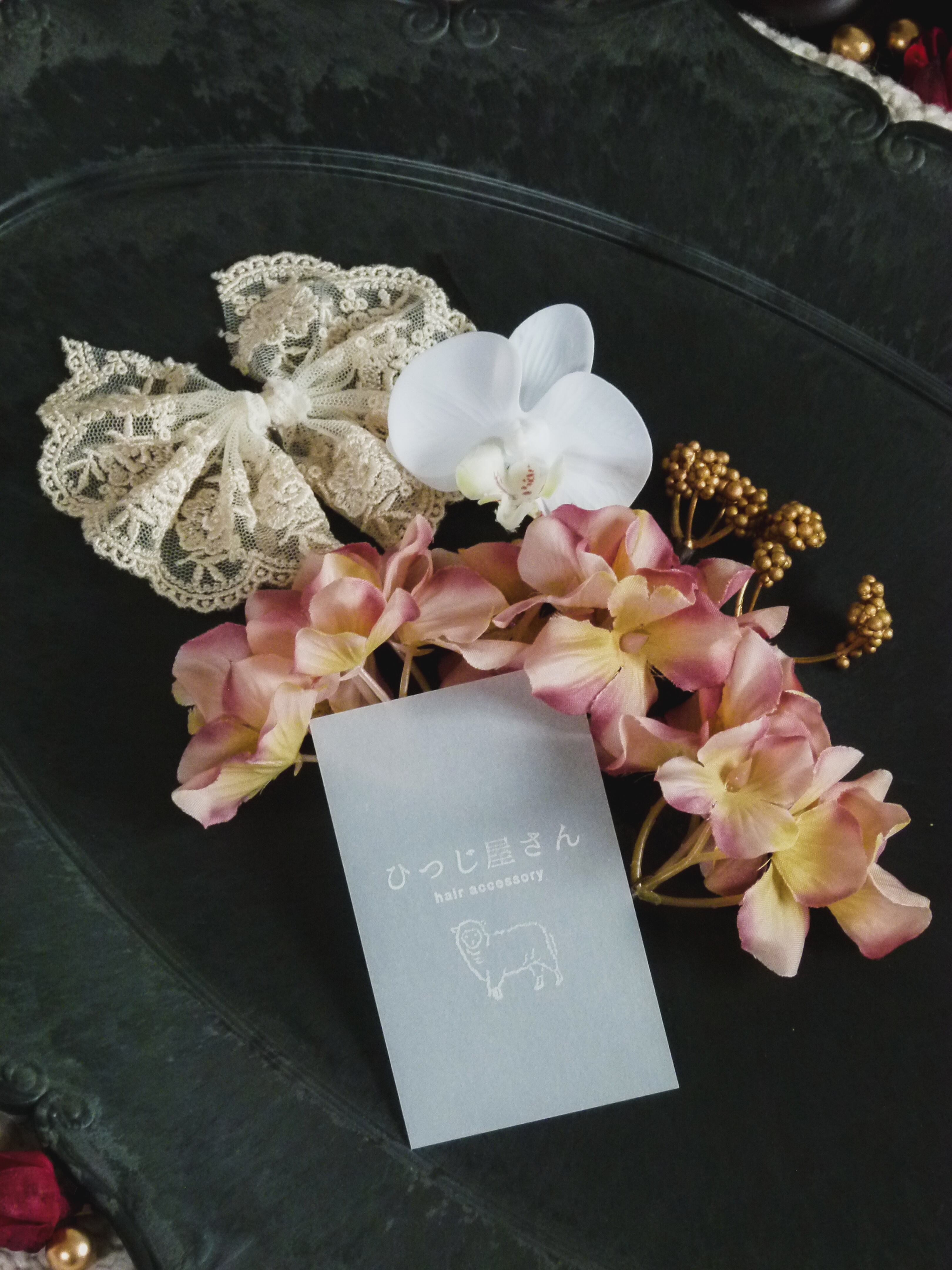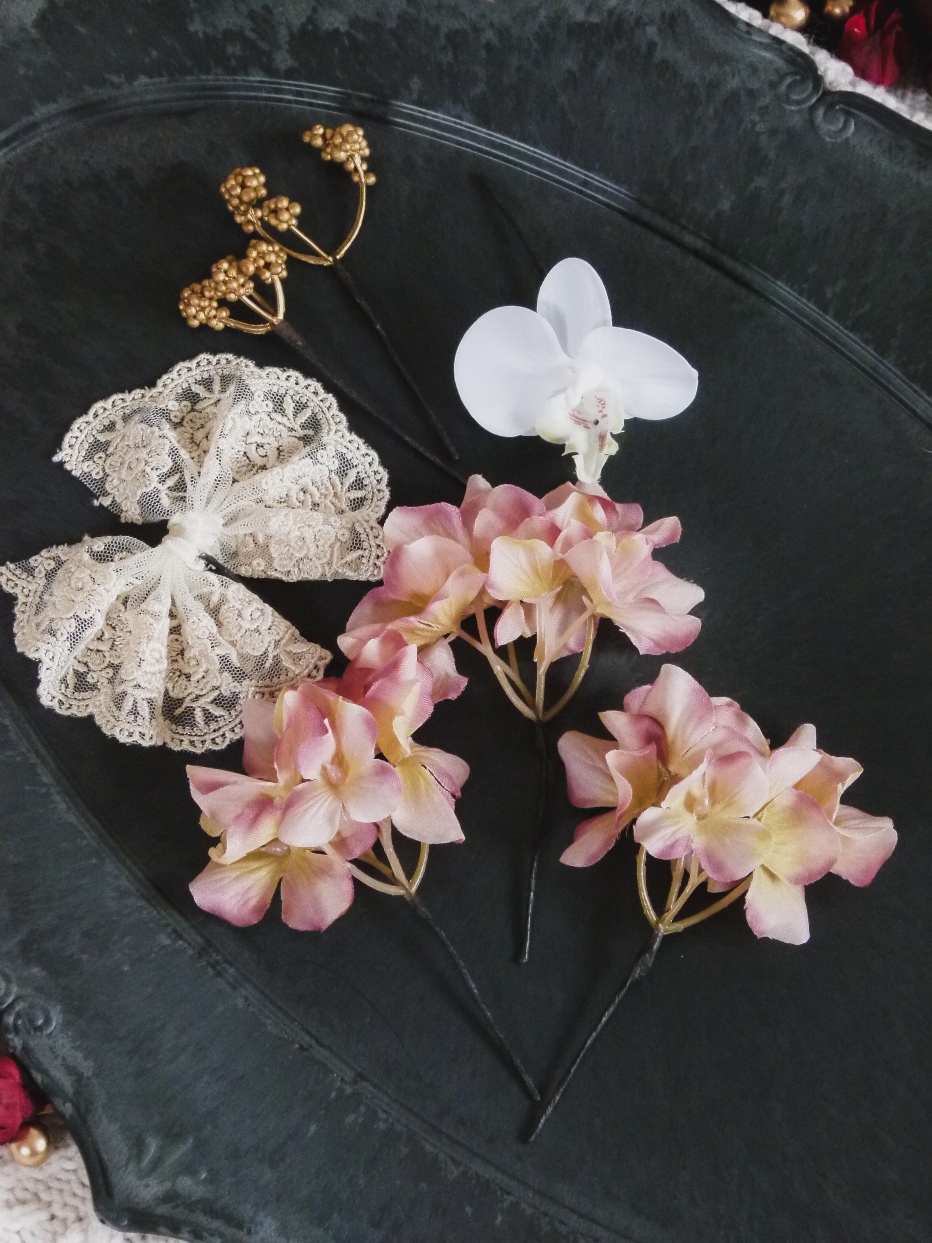 こだわりの繊細なアンティーク風レースとお花を組み合わせることで、よりアレンジの幅が広がります。